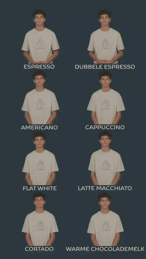 Elke kop koffie is een kans om iets nieuws te leren. Via schermen leer je de gebaren voor je favoriete drankjes, en tijdens speciale momenten kun je zelf ervaren hoe rijk en expressief gebarentaal is. Of je nu komt voor een brunch met vrienden, een latte in stilte, of een gebaarrijke ontmoeting – bij ons ben je welkom.